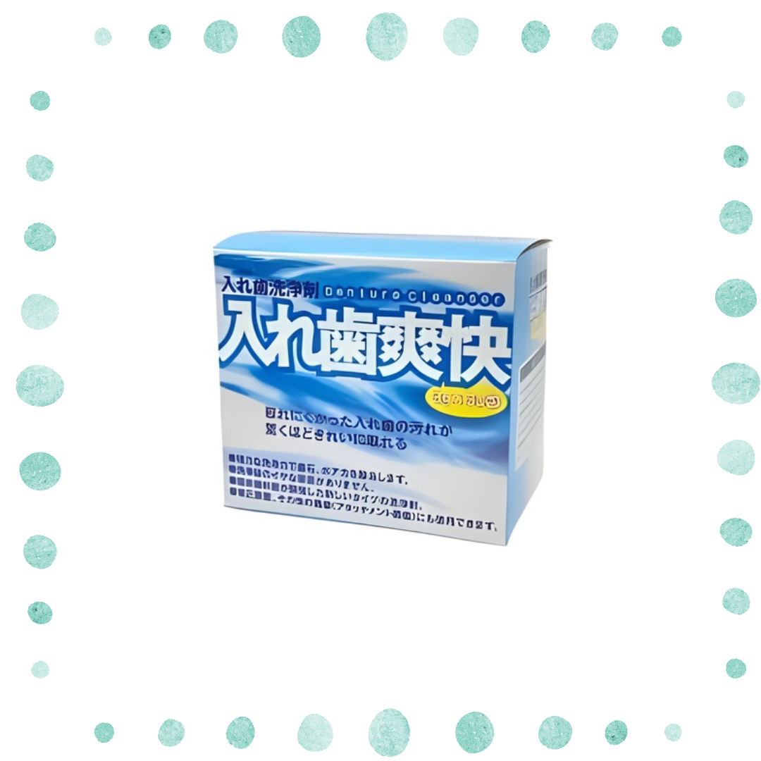 入れ歯爽快は、歯科医師の発想から開発された義歯(入れ歯)専用の洗浄剤で、頑固な汚れやニオイをしっかり除去できるのが特長です。有機酸の働きにより、歯石や水アカなどの付着物を効果的に分解し、義歯を清潔な状態に保ちます。洗浄後の薬品臭が少なく、毎日のケアに取り入れやすい設計で、部分入れ歯から総入れ歯、矯正装置まで幅広く使用可能です。