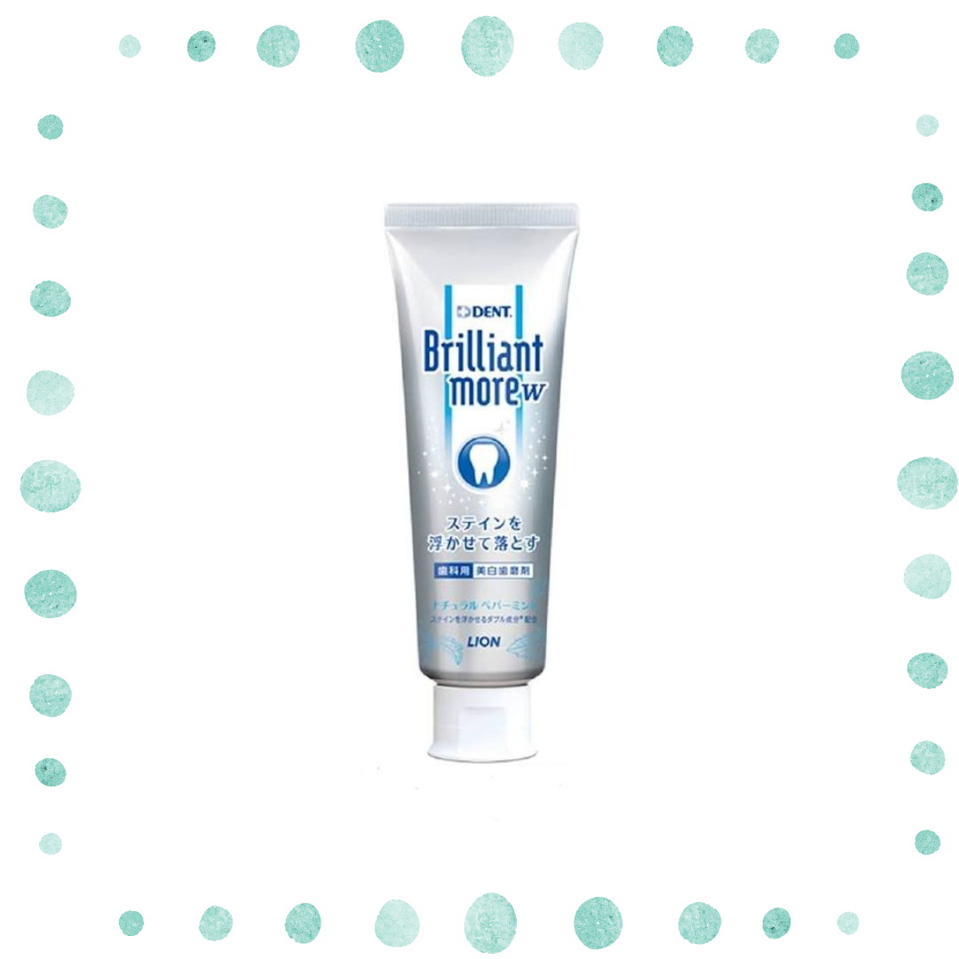 Brilliant more W(ブリリアントモア ダブル)は、ライオン歯科材が開発した美白ケアに特化した歯科専売の歯みがきです。ステイン(着色汚れ)を浮かせて落とすダブル成分を配合し、歯本来の白さへ導きます。さらに、殺菌成分が口臭を予防し、フッ素配合によりむし歯予防にも対応。日常のブラッシングで効率よく着色ケアができる、セルフホワイトニングに適したアイテムです。